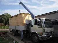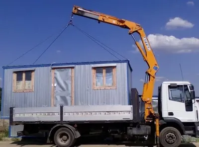В услугу входит перевозка бытовок манипулятором, а также транспортировка различных модульных и цельносварных конструкций (павильоны, временные постройки, элементы каркасных и панельных домов). Для перевозки негабаритных бытовок транспортное средство подбирается индивидуально, в зависимости от массы и размера груза.